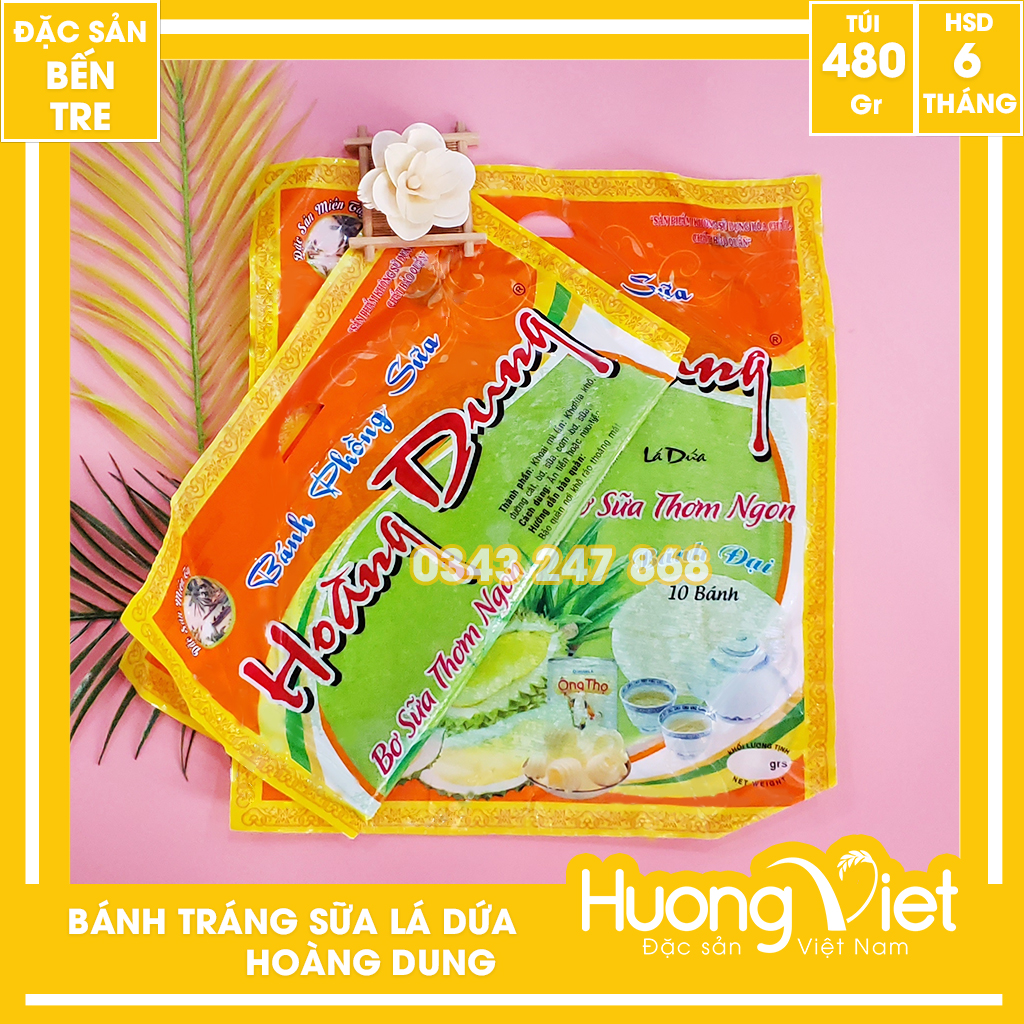 Bánh phồng sữa lá dứa Hoàng Dung (hay còn được gọi Bánh tráng sữa) là một trong những đặc sản nổi tiếng của miền tây, với thành phẩn chính của bánh là nước cốt dừa nguyên chất, lá dứa, khoai mì… bánh ăn mềm dẻo và đậm đà vị nước cốt